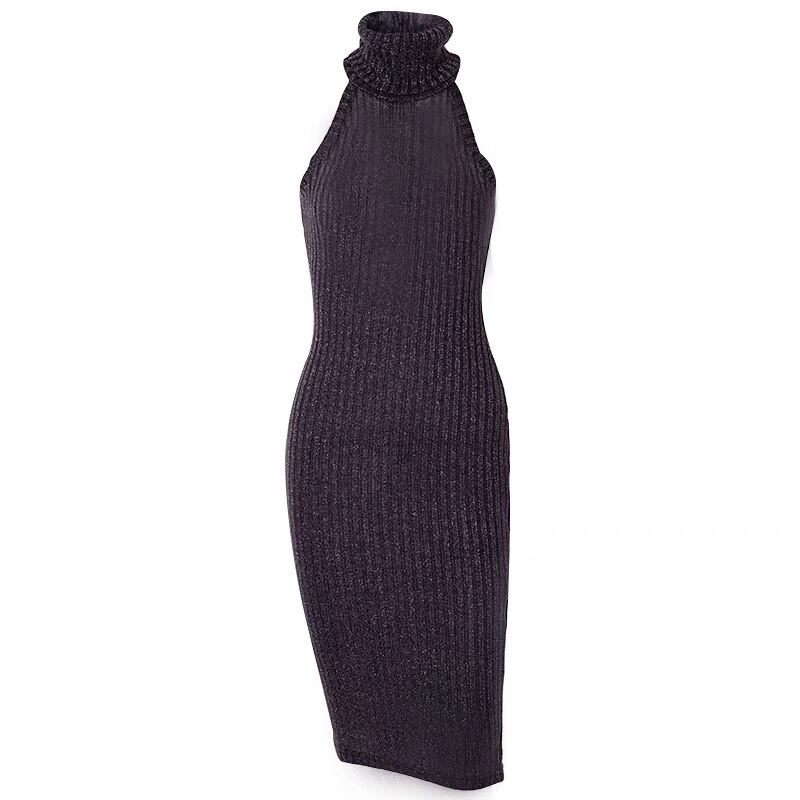 ニット クロス ハイネックボディコンドレス