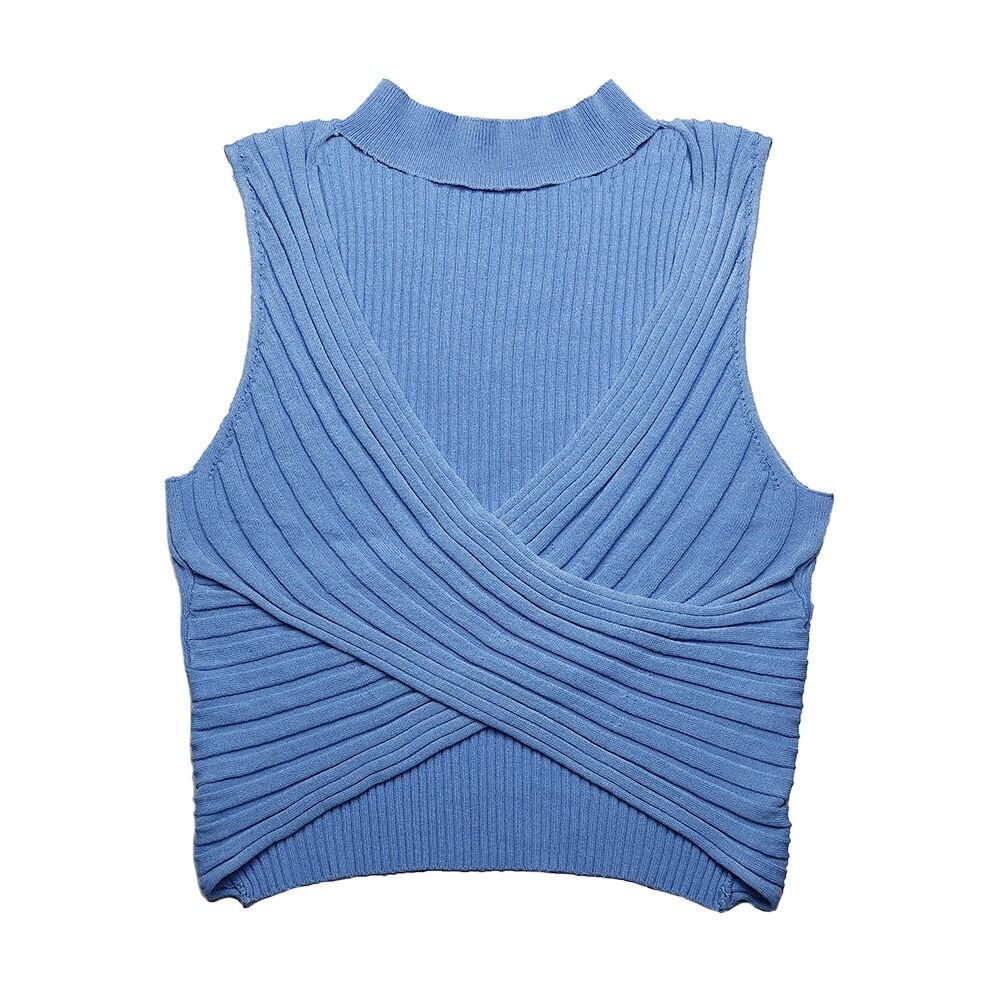 Vカット ニットクロストップス